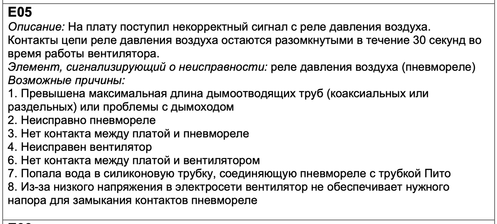 В котле Baxi Eco Nova ошибка Е05 ссылается на систему дымоудаления